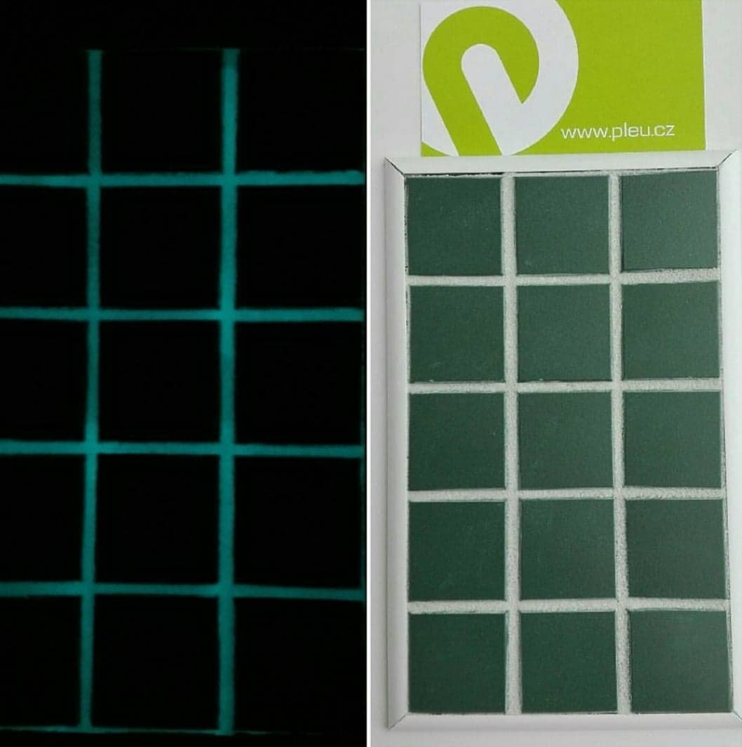Svítící spárovací hmotu můžete namíchat z našeho fotoluminiscenčního pigmentu. Do spárovacích hmot doporučujeme hrubší zrnitost, vhodné svítící pigmenty: PLE-P-Z-6D, svítí ve tmě zeleně, PLE-P-M-5D, svítí ve tmě modře, vhodné jsou i jiné fotoluminiscenční hrubší pigmenty.